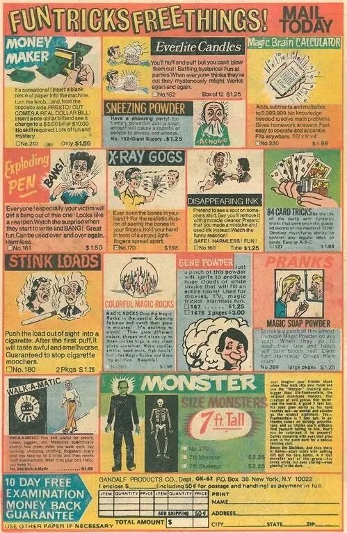 25. Wanting so badly to order these prank toys that came in the back of random comics and kids magazines (also why did the graphics always look like they hadn’t been updated since the ’50s?):
